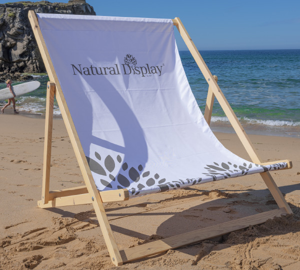 Bij onze full-color strandstoelen wordt het doek via sublimatie volledig full-color bedrukt langs de voorkant (achterkant blijft wit). Op deze manier kan je je huisstijl optimaal doortrekken, met de juiste kleuren of foto's op je ganse strandstoel