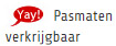 Een andere manier om de kledij te kunnen ervaren, is om een pasmaten-pakket te bestellen. Voor de populairste artikels hebben we een standaard pakketje samengesteld met verschillende kleuren en maten. Als er een 'yay' symbool bij het artikel staat, dan zijn er pasmaten beschikbaar. Je bestelt ze door op dat symbooltje te klikken.